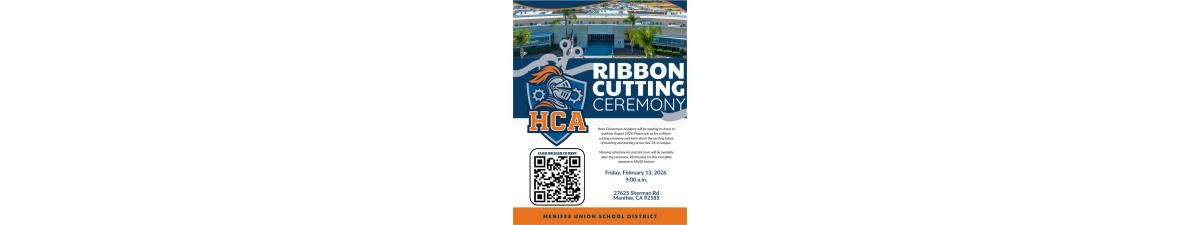 Join Menifee Union School District for the official Ribbon Cutting Ceremony celebrating the future home of Hans Christensen Academy. This special event marks an exciting milestone as the new TK through 8 campus prepares to open its doors to students in August 2026. Guests will hear about the vision for teaching and learning at the new campus and enjoy morning refreshments and guided site tours following the ceremony.